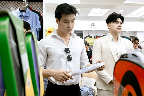 Tại sự kiện, các Nam vương, Á vương, Á hậu cũng bất ngờ bắt gặp các fan sắc đẹp cũng đến chọn mua trang phục thể thao tại showroom Thế giới đồ tập. Niềm đam mê và yêu thích rèn luyện thể thao chính là điểm chung vô tình gắn kết các bạn trẻ lại gần với nhau hơn trong một ngày cuối tuần xanh trong có tiết trời mát dịu.
