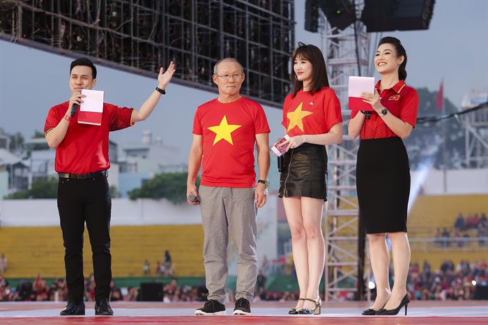 Kể đến kỳ tích của U23 Việt Nam, không thể không nhắc đến công sức thầm lặng của vị Huấn luyện viên trường người Hàn Park Hang Seo. Và trong chương trình, ông đã được mời lên sân khấu để chia sẻ cảm xúc trước hàng ngàn khán giả Việt.