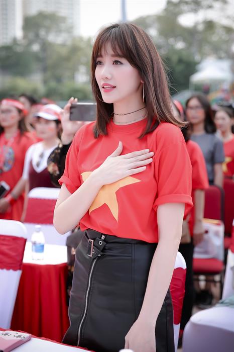 Hari Won tâm sự: “Dõi theo diễn biến của các tuyển thủ U23 tại giải đấu châu Á, tôi thật sự khâm phục, tự hào vì niềm đam mê và sự kiên định của các bạn ấy với nghề. Tôi cảm thấy vô cùng vinh dự khi được góp mặt, dù chỉ ở một vai trò khiêm tốn trong buổi lễ vinh danh này tài TPHCM”.