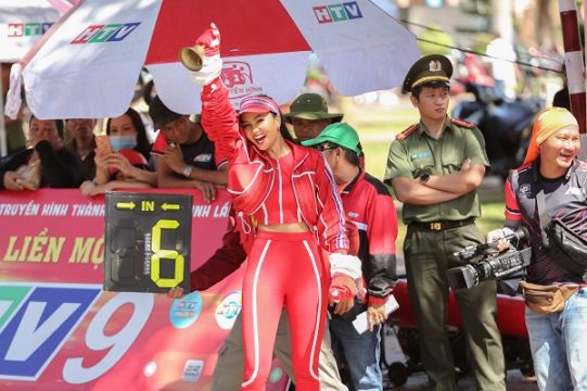 Giữ vai trò đồng hành cùng cuộc đua xe đạp năm nay, Hoa hậu H’Hen Niê ngoài việc tiếp thêm sức mạnh, cổ vũ tinh thần cho các tay đua, mỗi lần xuất hiện cô lại khiến khán giả bất ngờ bởi hình ảnh “tắt kỳ hoa” biến đổi không ngừng. Nếu như ở chặng đua Tam Kỳ – Quảng Nam, H’Hen Niê diện nguyên cây xanh neon cùng mái tóc bạch kim cá tính, thì lần này, khi đoàn đua đi qua Buôn Ma Thuột – vùng đất Tây Nguyên yêu dấu của mình, Hoa hậu H’Hen Niê quyết định mang bản sắc dân tộc lên trên bộ trang phục.
