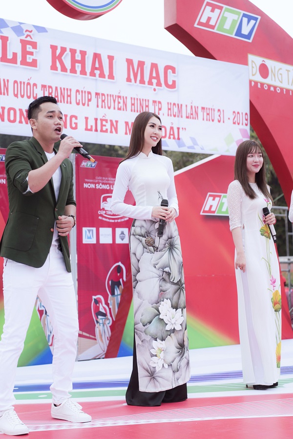 Hoa hậu sắc đẹp châu Á thu hút quan khách tham dự và người dân khi diện áo dài với hoạ tiết hoa sen nổi bật, sắc vóc vạn người mê cùng suối tóc dài tha thướt. Tường Linh tham dự sự kiện với vai trò Hoa hậu đồng hành giải đua năm nay, sự có mặt của cô đã góp phần làm rộn ràng hơn không khí của giải, cổ vũ các cua rơ một mùa thi đấu thành công và an toàn. Hoa hậu cũng tham gia hát khai mạc giải cùng một số nghệ sĩ tham gia chương trình ca khúc “Những bánh xe quay nhanh”. Để chuẩn bị cho phần biểu diễn này, Tường Linh đã miệt mài tập luyện suốt một tuần qua. Đây cũng là lần đầu tiên Tường Linh trổ tài ca hát ở một sự kiện lớn, cô chia sẻ, dẫu hát chung nhưng cô cũng khá run và hồi hộp khi ca hát không phải sở trường của mình, lại là sự kiện trực tiếp. Tường Linh nói vui: “Có cầm mic hát mới thấy làm ca sĩ khó quá, bài hát Linh mới biết nên suốt ngày phải nhẩm học lời. May mắn khi hoà giọng chung với các anh chị tham gia chương trình đã rất thuận lợi”
