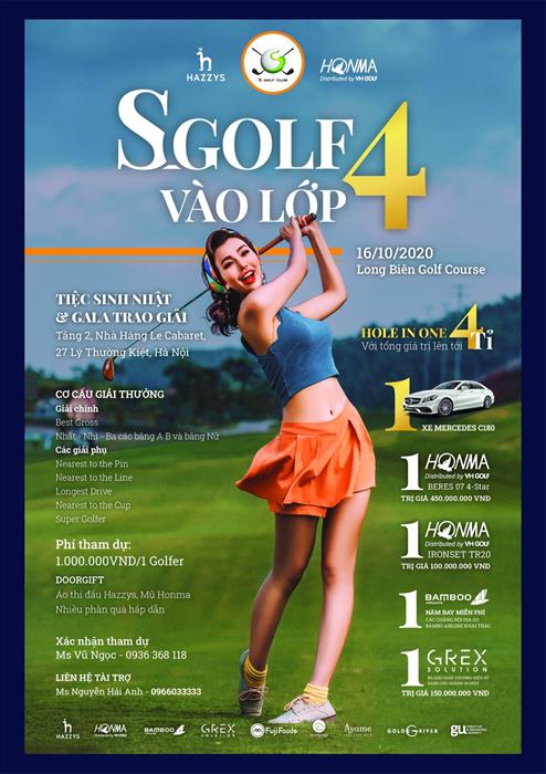 Để đánh dấu mốc tròn 4 năm với giải đấu mang tên S_Golf vào lớp 4, sẽ được tổ chức vào ngày 16/10 tại sân Golf Long Biên- Hà Nội, tiệc gala trao giải và mừng sinh nhật được tổ chức tại nhà hàng Le Cabaret tại 27 Lý Thường Kiệt, Hà Nội. Giải đấu sẽ thi đấu Stableford, hình thức tính điểm ko dựa trên tổng số gậy của golfer sau khi kết thúc 18 hố, mà dựa trên số gậy đánh của từng hố. Thể thức này không mới lạ nhưng khác biệt so với phần lớn các giải đấu hiện tại.