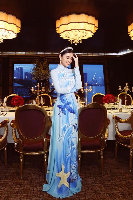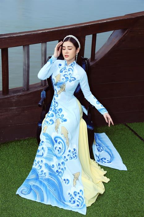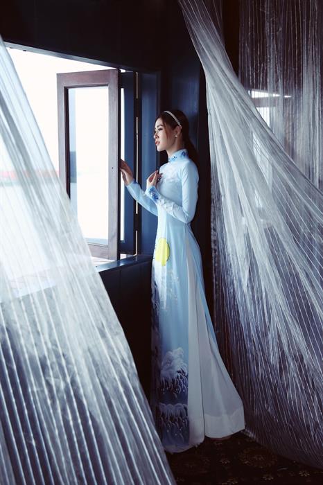 Tintuc - Tung bộ ảnh áo dài mang cảm hứng đại dương trên du thuyền 5 sao, Á hậu Lý Kim Thảo nhận nhiều lời khen ngợi với nhan sắc xinh đẹp và sang trọng.