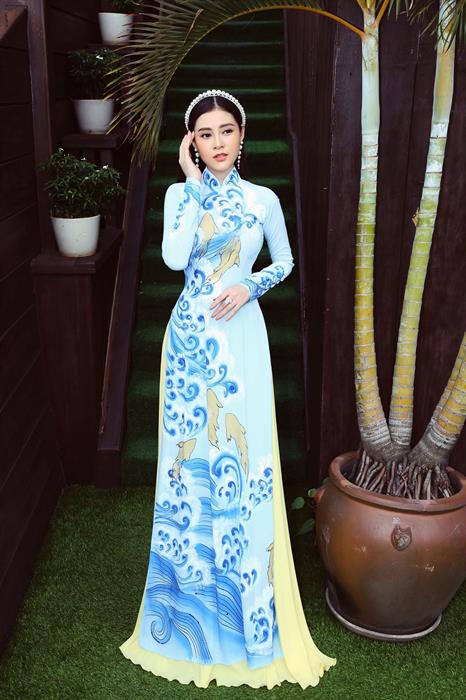 Trong bộ ảnh mới, Lý Kim Thảo tiếp tục thu hút sự quan tâm của khi tung trọn vẹn bộ ảnh áo dài độc đáo. Được biết những thiết kế mà nàng Á hậu diện trên người thuộc BST áo dài của NTK Tommy Nguyễn lấy cảm hứng từ đại dương với nền vải lụa mềm mại màu xanh nước biển. Sử dụng hình ảnh các loài sinh vật biển làm họa tiết, các mẫu áo dài này mang thông điệp bảo vệ môi trường, với mong muốn biển luôn xanh – sạch – đẹp.