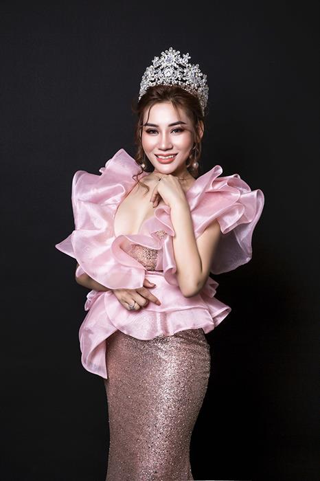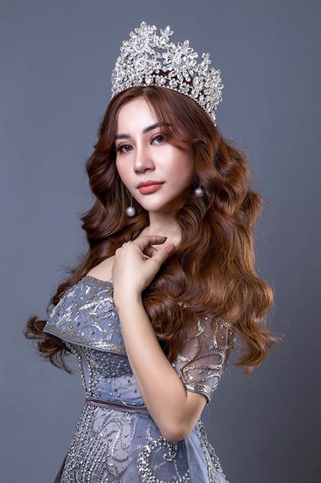 Cô chọn cách làm tóc đúng chuẩn hoa hậu, uốn sóng nhẹ nhàng, bồng bềnh đầy mê hoặc. Trong khi đó, vương miện danh giá được đội trên đầu càng giúp người nhìn liên tưởng tới sắc đẹp như nữ thần.