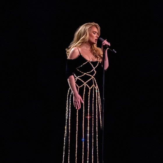 Bắt đầu từ tháng 11.2022, “Weekends with Adele” là một chuỗi show âm nhạc tâm huyết của siêu sao âm nhạc Adele, diễn ra vào các dịp cuối tuần tại khách sạn cao cấp Caesar Palace với giá vé tham dự lên đến vài chục ngàn USD, biến đây trở thành một trong những show diễn đắt giá nhất thế giới. Không chỉ chiều lòng thính giả bởi hàng loạt bản tình ca lãng mạn, nữ ca sĩ luôn xuất hiện với những bộ phục sức sang trọng và cuốn hút. Điểm chung của các thiết kế Adele chọn đều có tông màu đen huyền bí, sắc sảo khi kết hợp cùng nữ trang lấp lánh, đôi môi trầm và mái tóc vàng thương hiệu.