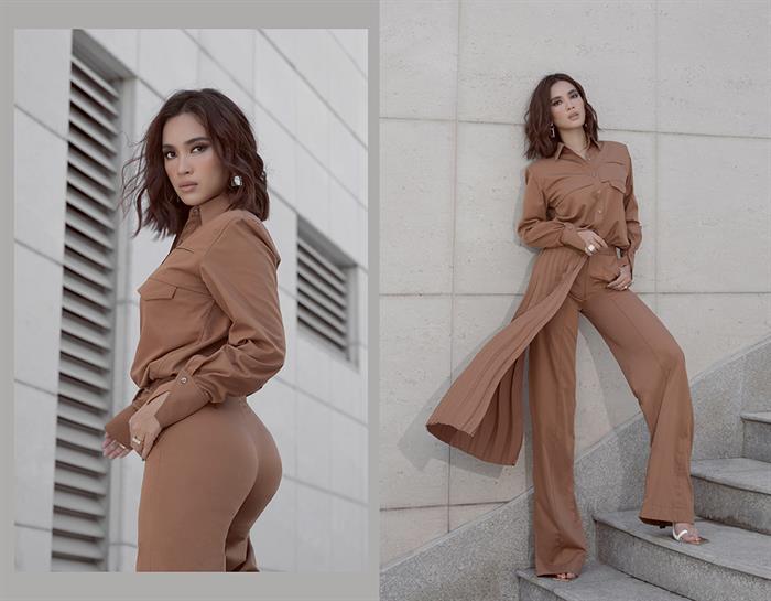 Nữ ca sĩ tâm sự: "Phong cách menswear hay businesswear lần này là một trải nghiệm khá thú vị với tôi. Độc lập, tự tin và mạnh mẽ là những gì tôi đang theo đuổi." Phần lớn các trang phục cô chọn đều mang gam màu trung tính be, nâu, cam thể hiện được hình tượng nữ tính, quyến rũ đầy kiêu hãnh cũng như mang tính ứng dụng cao.