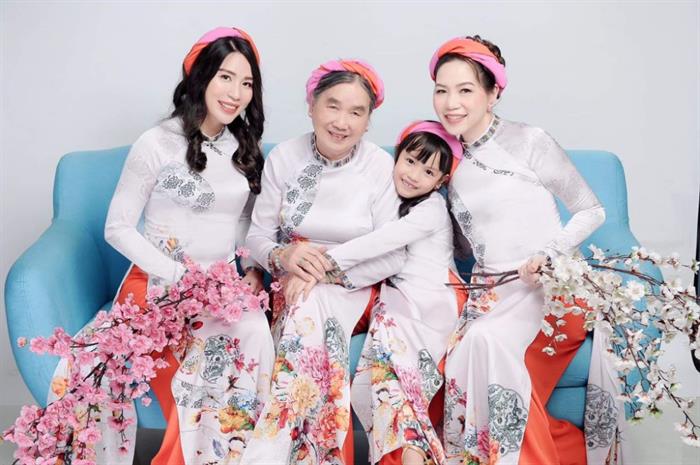 Cùng xuất hiện trong bộ ảnh Xuân 4 thế hệ, có mẹ của Hoa hậu Trịnh Vân Anh. Chị tiết lộ, năm nay mẹ chị đã sang tuổi 81, là nhà giáo đã nghỉ hưu nhưng bà vẫn say sưa hoạt động xã hội, làm công tác từ thiện. Khi được cô con gái đề nghị cùng nhau chụp ảnh Xuân với áo dài, bà rất vui và nhanh chóng hưởng ứng.