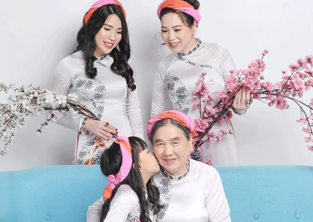 Tintuc - Trong không khí đón chào Xuân mới, Hoa hậu Quý bà Duyên dáng Trịnh Vân Anh cùng mẹ, cháu và con gái đã cùng nhau chụp một bộ ảnh, lưu lại kỷ niệm về Xuân trong áo dài của NTK Việt Hùng.