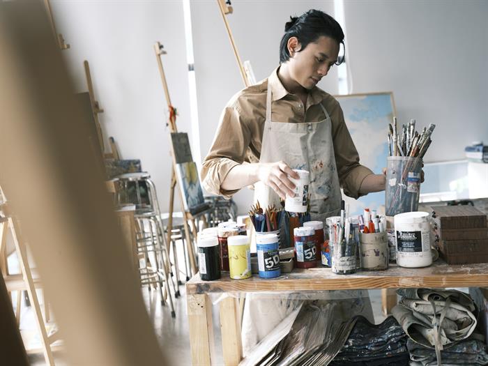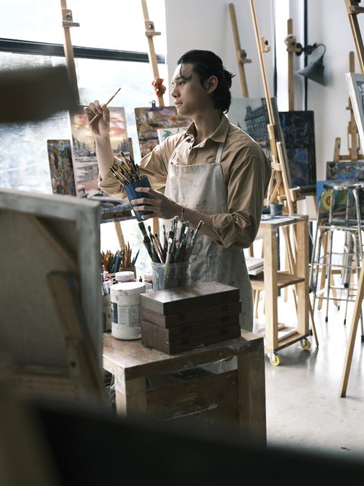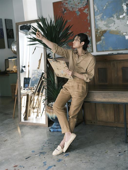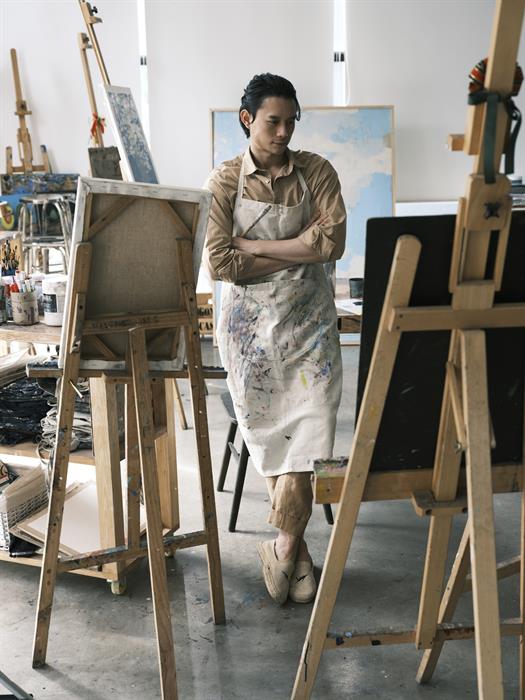 Tintuc - Diễn viên Nguyễn Anh Dũng vừa thực hiện một bộ ảnh nghệ thuật. Khác với hình tượng bảnh bao thường thấy khi xuất hiện trong các sự kiện giải trí và khoảnh khắc khoe body 6 múi đầy nóng bỏng, nam tính dịp đầu năm, anh tạo sự mới mẻ, đa dạng khi hóa chàng họa sĩ đầy lãng tử giữa không gian đậm chất hội họa.