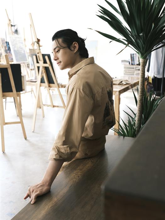Hình tượng chàng thơ tự vẽ người trong mộng như khắc họa tính cách si tình, sống tình cảm, luôn quan sát và trân trọng cảm xúc của mọi người xung quanh anh. Chỉ diện trang phục đơn giản, thể hiện thần thái thoải mái và tự nhiên nhất, song Nguyễn Anh Dũng vẫn khoe khéo được vẻ điển trai ở mọi góc nhìn.