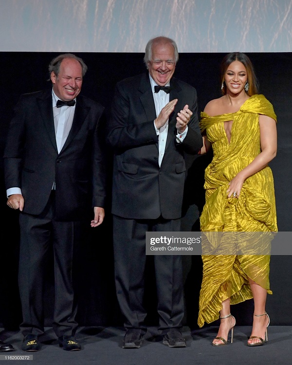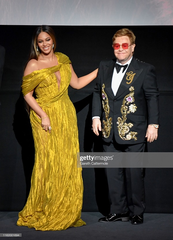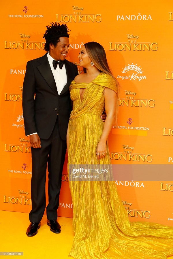 Tapchisaoviet - Beyonce vàng rực trong thiết kế Công Trí gặp gỡ cặp đôi hoàng gia Meghan Markle và Harry trong buổi công chiếu “The Lion King”. Dù thời gian khá gấp rút nhưng NTK Công Trí đã nhanh chóng hoàn tất bộ váy vừa vặn với số đo theo đơn đặt hàng của bên Beyonce.