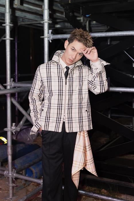Chiếc khăn lụa Burberry Check trở thành điểm nhấn tinh tế, hoàn thiện tổng thể outfit Burberry đẳng cấp của Song Luân.