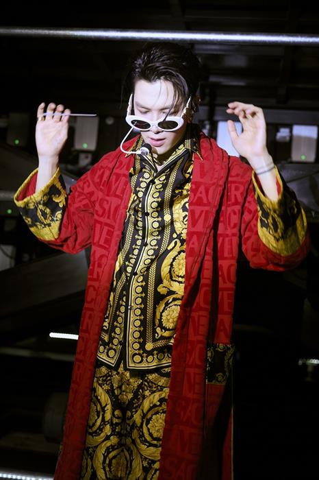 Atus chọn Versace để lăng xê Luxury Baroque Streetwear. Áo choàng tắm Baroque Print – item từng được G-Dragon yêu thích – trở thành điểm nhấn, kết hợp cùng outfit matching đậm chất Versace.