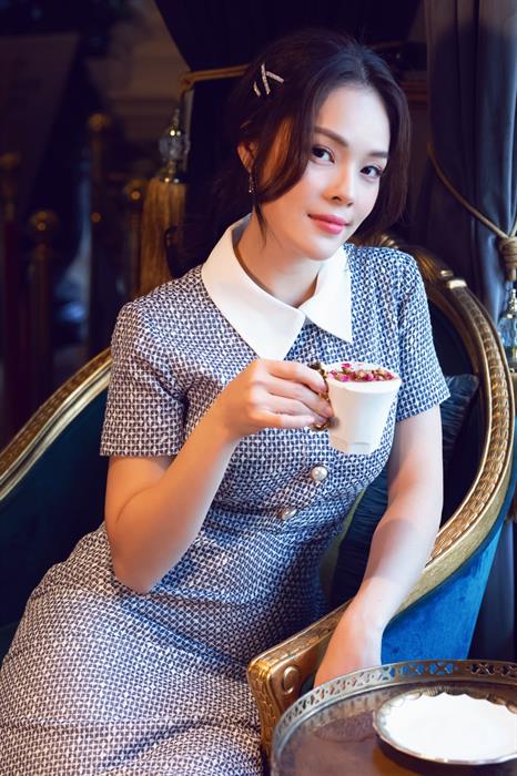 Xuất hiện trong một không gian ấm cúng, sang trọng theo phong cách quý tộc, Dương Cẩm Lynh xinh đẹp không khác gì một một quý cô cổ điển. Cô đang tận hưởng cuộc sống một cách thanh tao như uống trà và phong vị riêng của thời trang. Chính sự thư thái này, cô như lan tỏa một nguồn năng lượng tích cực gửi đến những người phụ nữ yêu cái đẹp và cuộc sống.