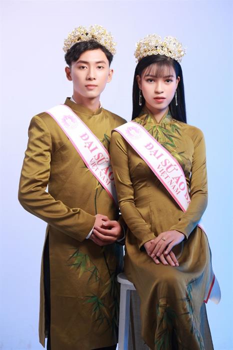 Tintuc - Xuất sắc đoạt danh hiệu Danh hiệu Nam vương Áo dài và Người đẹp Áo dài tại sân chơi Miss & Mr Hutech, Nguyễn Thanh Châu Linh và Phạm Thị Ngọc Trang đã chính thức bước chân vào gia đình Đại sứ Áo dài Việt Nam.