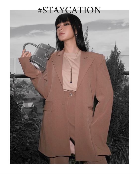 Bộ vest nâu với thiết kế cầu vai đặc biệt cùng kiểu trang điểm ấn tượng rất hình ảnh Châu Bùi đang theo đuổi - cá tính và hiện đại.