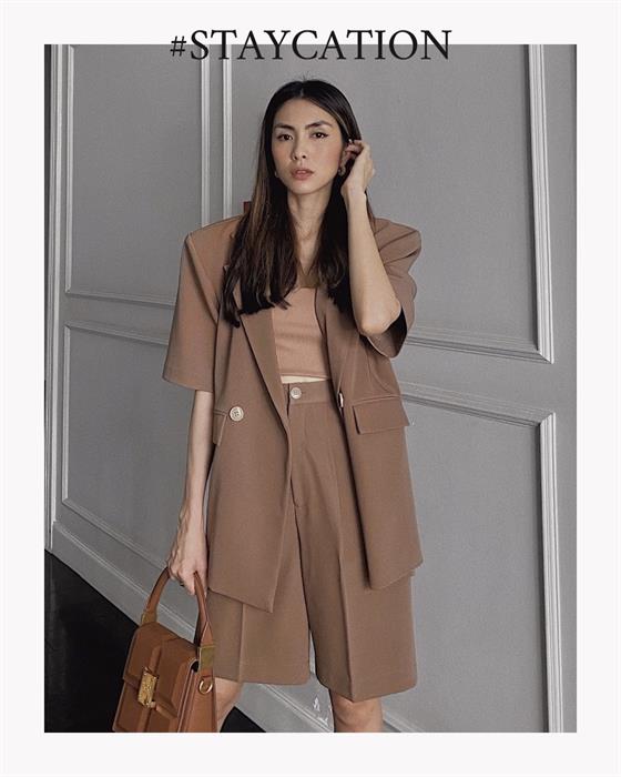 Ngọc nữ của làng giải trí Việt luôn được yêu mến bởi sự thanh lịch nhã nhặn trong phong cách thời trang của mình. Blazer tay ngắn và quần shorts cùng màu - một sự kết hợp đơn giản nhưng vẫn rất tinh tế.