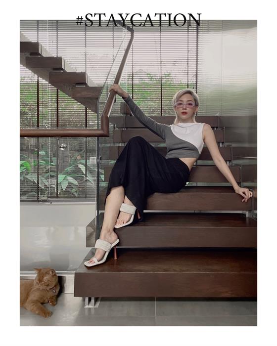 Chụp ở Studio hay ở cầu thang tại gia thì đều vẫn phải thật thời trang phải không? Nữ ca sĩ Tóc Tiên vô cùng gợi cảm và cá tính khi diện mẫu váy với những đường cắt quyến rũ.