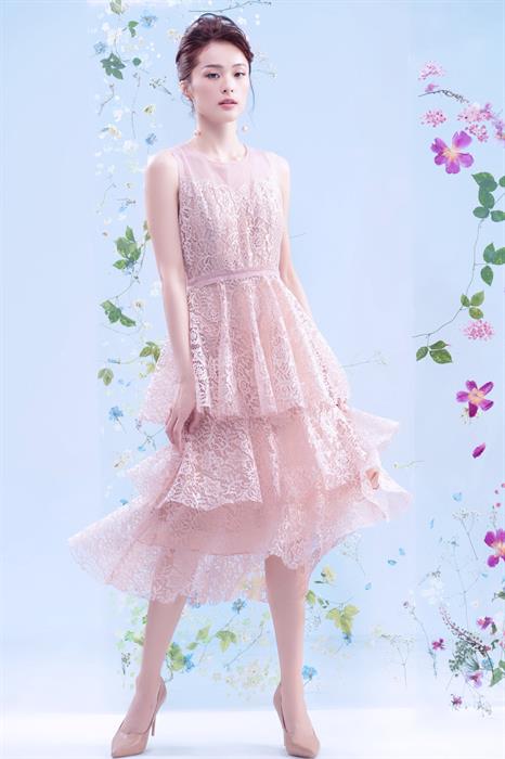 Với thiết kế đầm ren hoa hồng phù hợp nhiều dáng người, nhà thiết kế đã khéo léo biến tấu thiết kế thường ngày trở nên thú vị hơn với chi tiết chiết eo và váy xếp tầng tạo cảm giác bồng bềnh. Chiếc váy thanh tao, chuyển động nhẹ nhàng tạo cái nhìn uyển chuyển cùng hiệu ứng thị giác đầy mê hoặc.