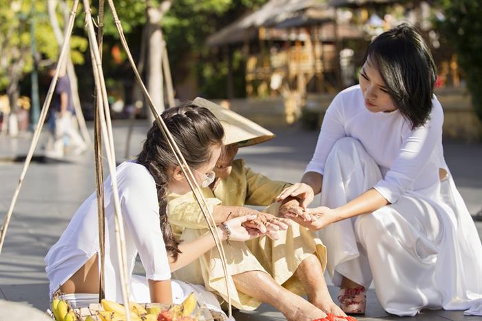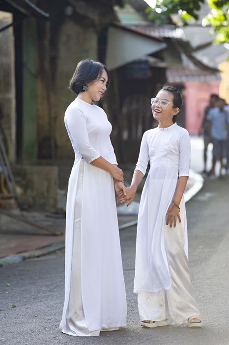 Rồi những ngày đi quay hình, giữa cái nắng chang chang của xứ Quảng, 2 mẹ con 2 tấm áo dài bịn rịn mồ hôi, vất vả mà tự hào. Nếp được yêu đất nước một cách rất tự nhiên qua những chuyến đi đầy nắng gió có mùi thơm cây lúa; qua những bờ biển “uốn thân rồng”; đặt chân đến những mảnh đất khô cằn trĩu trịt giàn nho; hay cao nguyên xanh tươi hùng vĩ đại ngàn…”