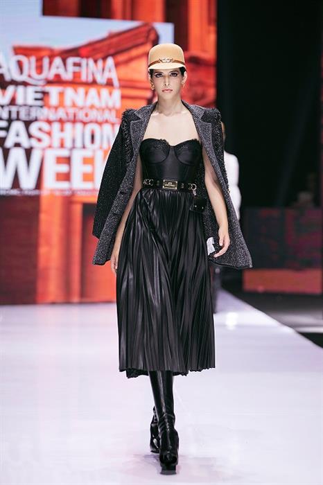 Đêm diễn đầu tiên của Aquafina Tuần lễ Thời trang Quốc tế Việt Nam – Aquafina Vietnam International Fashion Week 2021 đã mang lại cho khán giả những màn trình diễn đầy ấn tượng từ các nhà thiết kế nổi tiếng, các thương hiệu trong và ngoài nước. Đặc biệt trong đêm diễn ngày 21/12/2021 này, Vedette Hương Giang đã thể hiện được phong thái quý tộc, sang trọng mà thương hiệu muốn truyền tải qua BST “Elisabetta Franchi Fall Winter 2021-2022” với phong cách cổ điển kết hợp phá cách cùng các mẫu thiết kế thường xuyên được thay đổi theo xu hướng thông qua giai điệu đương đại nhằm nhấn mạnh sự độc lập tuyệt đối của người phụ nữ trong xu thế phát triển hiện nay.