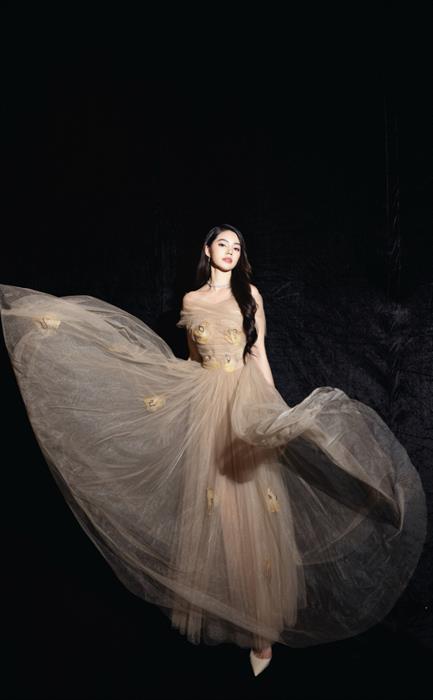 Trên thảm đỏ, Jolie Nguyễn diện bộ đầm voan thiết kế cách điệu của The Soul kết hợp kiểu trang điểm nhẹ nhàng, mái tóc xoăn dài nhẹ nhàng buông tự nhiên cùng set dây chuyền, hoa tai đính kim cương làm phụ kiện. Cô nàng gây thương nhớ với phong cách “nàng thơ” nhưng vẫn chuẩn thần thái và khí chất của một Hoa hậu con nhà giàu.