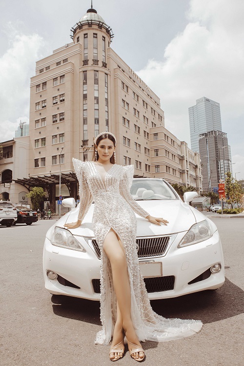 Tintuc - Hoa khôi Khánh My trong bộ váy dạ hội pha lê vừa xuất hiện giữa phố cùng NTK Tommy Nguyễn (Lê Mạc Ninh) trên chiếc siêu xe mui trần khiến bao ánh nhìn phải trầm trồ.