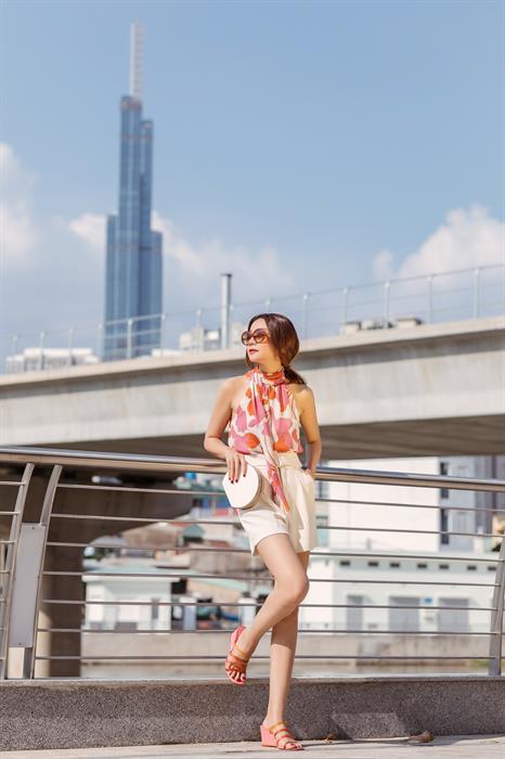 Một chiếc áo sát nách họa tiết hoa cùng quần short ngắn khoe đôi chân dài miên man được Thanh Hằng mix match cho những ngày đầu hè nắng nóng. Việc kết hợp thêm kính mắt, clutch cầm tay đầy ăn ý khiến bộ trang phục trở nên phong cách hơn