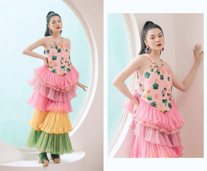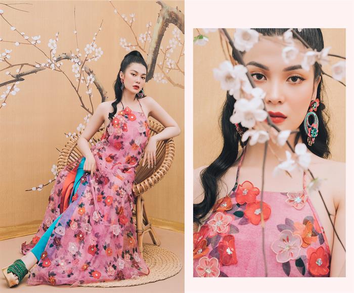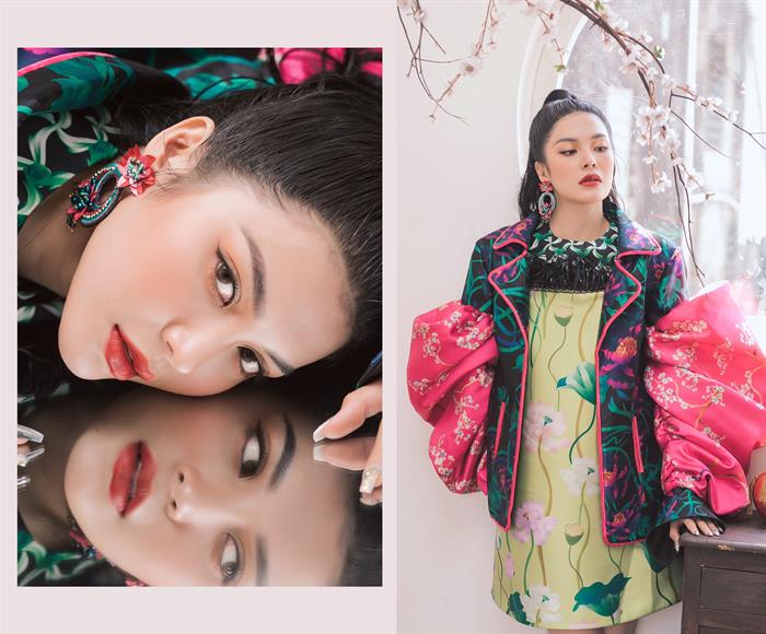 Bộ ảnh lần này tiếp tục khai thác vẻ đẹp sắc sảo, mặn mà của Á quân Tình Bolero 2018 trong trang phục sặc sỡ mang âm hưởng rộn ràng của mùa Xuân. Kiểu dáng có sự pha trộn giữa nét hiện đại và chất cổ điển.