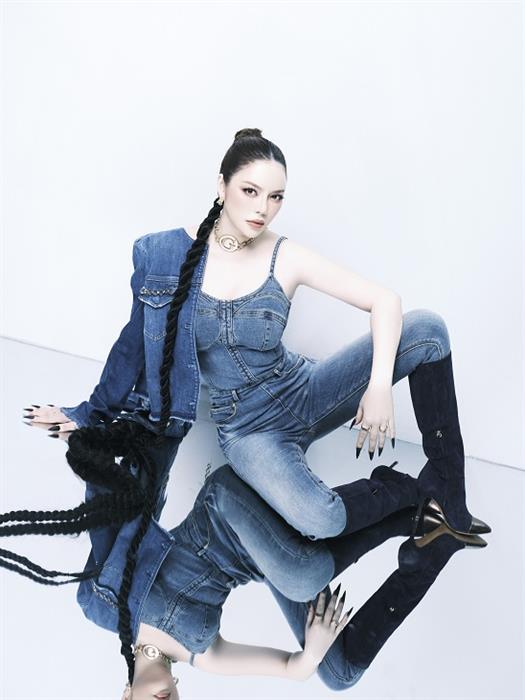 Trong set đồ đầu tiên, Lý Nhã Kỳ tự tin khoe dáng trong một thiết kế tự vải demin, kết hợp với boost da và kiểu tóc tết dài cá tính. Tổng thể bộ cánh giúp hình ảnh của Lý Nhã Kỳ trở nên mới mẻ, phóng khoáng và có phần mạnh mẽ hơn.