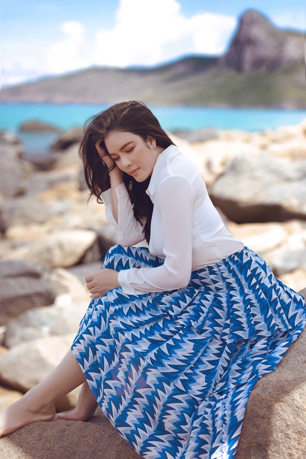 Mang theo tinh thần tự do, concept bộ ảnh là những chiếc váy dài màu trắng không chỉ giúp người đẹp Vũng Tàu trông nhẹ nhàng, bay bổng mà còn giúp tinh thần thư giãn hơn. Váy trắng là lựa chọn hài hòa với cho bức ảnh chụp giữa sắc nước mênh mông, những tia nắng chói chang, người đẹp khéo léo đội nón vừa che nắng vừa toát lên nét đẹp quý phái, cổ điển.