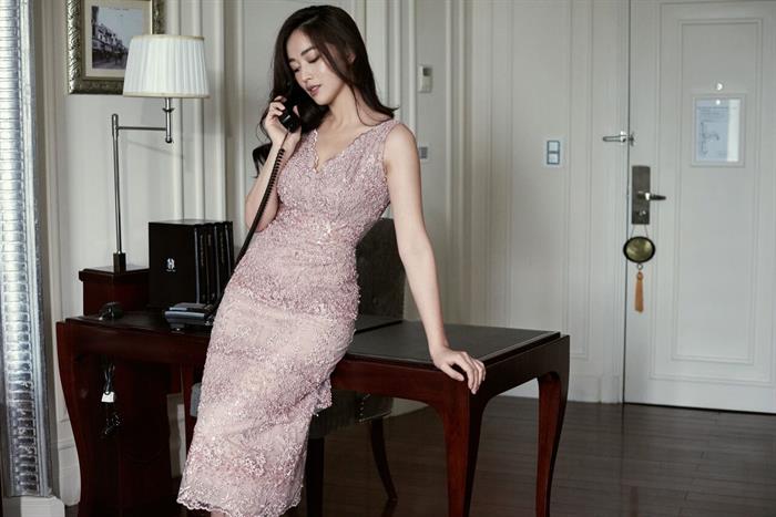 Có thể kể đến hình ảnh duyên dáng từ thiết kế tôn dáng màu đỏ rượu chát tôn lên làn da trắng. Và đôi khi lại mộng mơ với thiết kế váy thắt nơ mang đến hình ảnh lãng mạn cho người mặc.