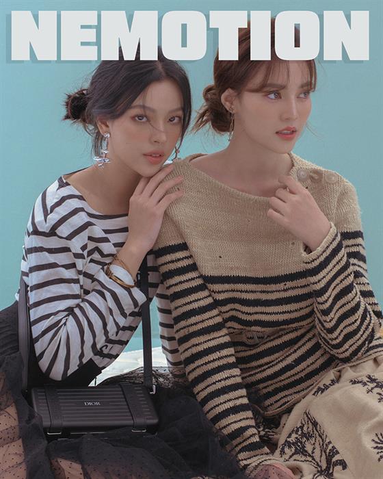 Như set đầu tiên, Tú Hảo và Ninh Dương Lan Ngọc đã chọn cho mình key item chung chính là sweater và chân váy. Tuy có phần khác biệt ở gam màu, cặp đôi vẫn có sự liên kết khi chọn cùng một họa tiết sọc ngang Breton cho phần top và sắc đen cho tổng thể thích hợp cho cô nàng công sở hay một buổi chiều dạo phố cuối tuần cùng bạn bè. Đấy là chưa nói đến cả 2 mỹ nhân đều phô diễn hoàn hảo những dáng pose và góc mặt tương tác rất tốt, không bị rời rạc.