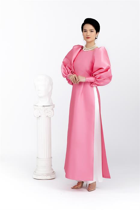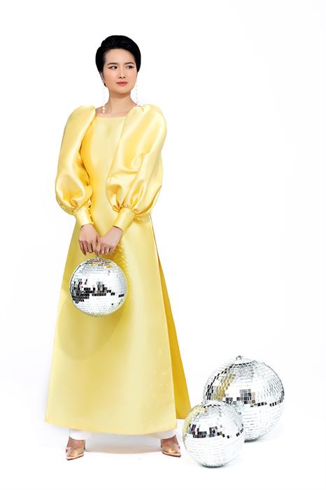 Thông tin thêm về bộ sưu tập Cao Thuỳ Dương mặc: Bộ sưu tập áo dài cách tân do nhà thiết kế Thuỷ Nguyễn thực hiện. Chi tiết cách tân ở phần cổ, tay bồng khiến tà áo dài truyền thống trở nên hiện đại hơn. Các thiết kế sử dụng màu sắc rực rỡ, biểu trương cho sự may mắn, cát tường trên nền chất liệu gấm in kỹ thuật số. Trang phục mang đến cho người mặc sự tươi tắn, nổi bật mà vẫn giữ được nét duyên dáng, thanh lịch. Phom áo cách tân với độ rộng vừa phải, không quá bó sát giúp trang phục phù hợp với nhiều dáng người và thời tiết của nhiều vùng miền khác nhau.