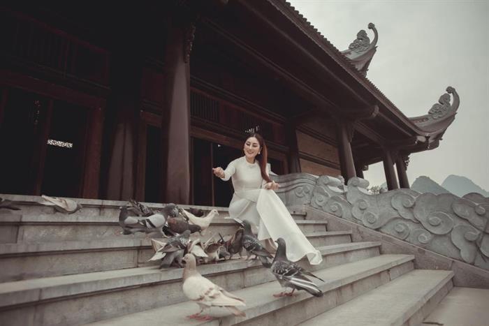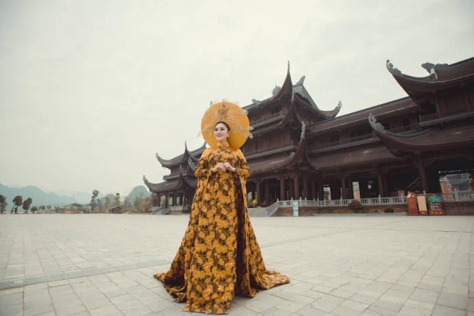 Có dịp ghép thăm Hà Nam, người đẹp quyết định thực hiện bộ ảnh kỉ niệm cùng với thiết kế áo dài của Hương Queen. Các bộ trang phục sử dụng tông màu vàng, đỏ, xanh,… kết hợp cùng với các họa tiết và phần tay áo đặc trưng theo phong cách hoàng gia. Với không gian cổ kính của chùa Tam Chúc (Hà Nam), Thu Trang đã thực sự hóa thân thành một “vương hậu” và toát lên khí chất của một hoàng thân.
