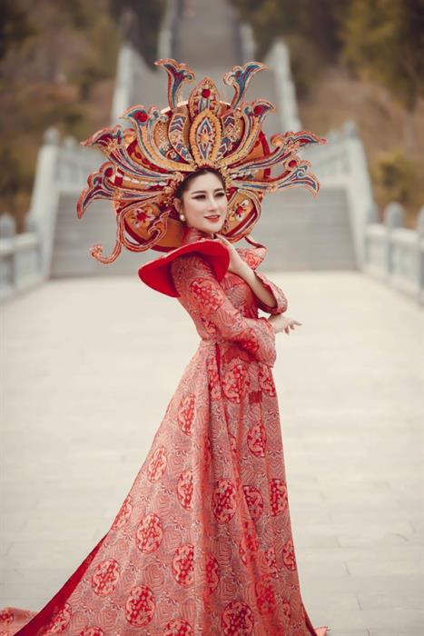 Ca sĩ Thu Trang Bolero là một trong những người đẹp có một tình yêu lớn với tà áo dài truyền thống. Trong tất cả các dịp giao lưu văn hóa với bạn bè trên thế giới hay đi diễn ở quốc tế, cô cũng ưu tiên lựa chọn trang phục dân tộc.
