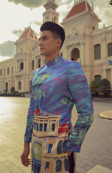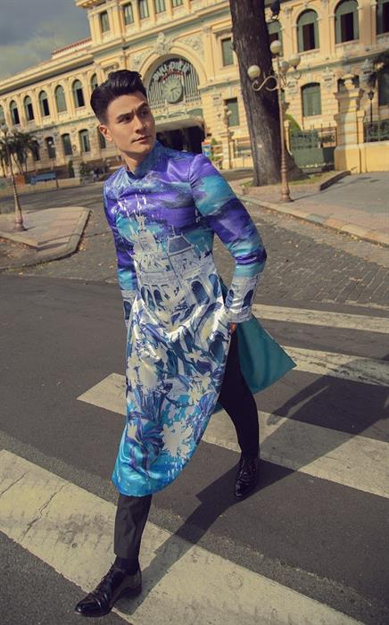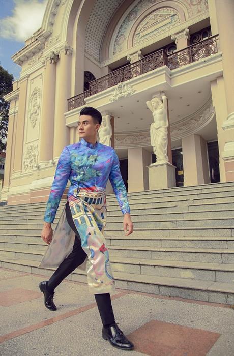 Các thiết kế áo dài màu sắc tươi trẻ, bắt mắt, hoạ tiết đậm nét truyền thống của Liên Hương hoàn toàn phù hợp với vóc dáng và vẻ điển trai của siêu mẫu Vĩnh Thuỵ. Sở hữu ngoại hình đạt chuẩn người mẫu quốc tế và gương mặt thu hút, Vĩnh Thuỵ luôn biết cách tạo sự khác biệt trong mỗi bộ ảnh của mình.