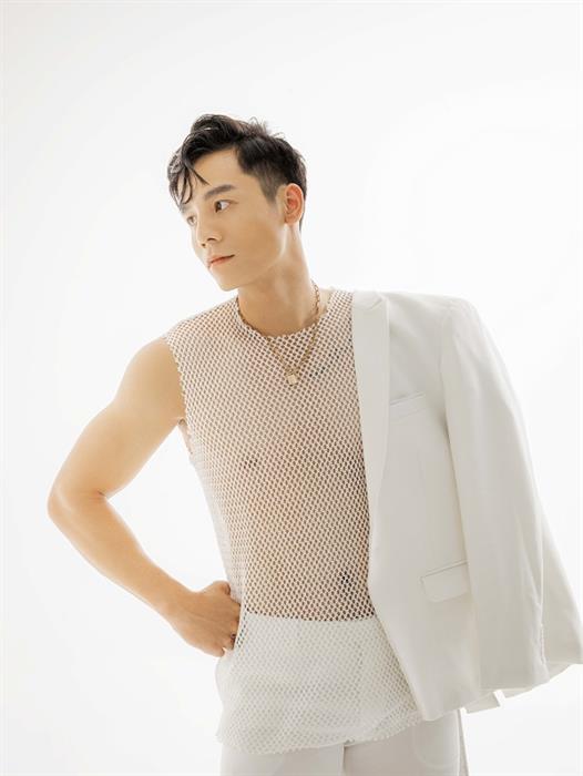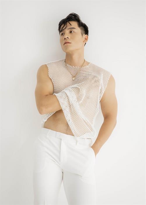 Thoát khỏi hình ảnh Nam vương Thế giới điển trai lịch lãm như vốn dĩ, Cao Xuân Tài bỗng bất ngờ xuất hiện trong loạt ảnh thời trang khác lạ với nguyên cây trắng tinh khôi gồm quần tây, áo lưới và áo vest khoác hờ.
