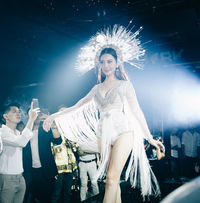Phản chiếu ánh đèn 8D tạo ra hiệu ứng về mặt thị giác phát quang trên từng bước đi khi nhìn từ nhiều góc độ -–“nữ hoàng tiệc đêm” chính là đây