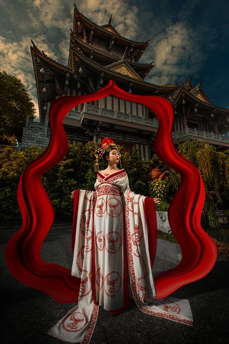 Bức ảnh đầu tiên được đăng trên trang Facebook của nhiếp ảnh gia Nguyễn Trường. Anh cho biết, cô gái này bên ngoài có vẻ đẹp yểu điệu, nhu mì, nhưng tính cách thì rất tự lập, bản lĩnh, nên anh đã chủ động mời cô làm người mẫu trong bộ ảnh, hóa thân thành nhân vật quyền lực Võ Tắc Thiên.
