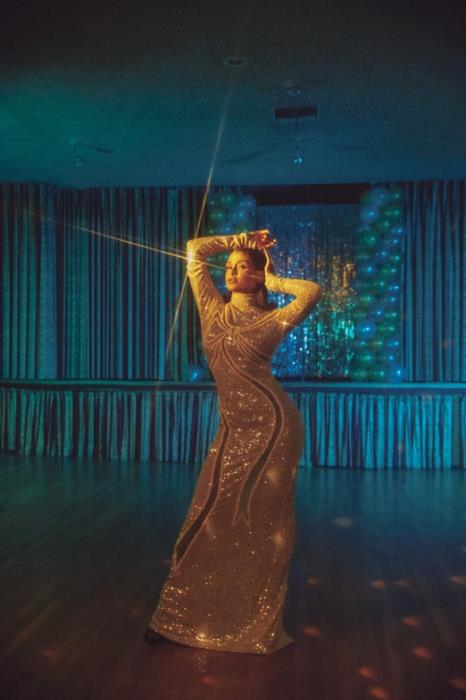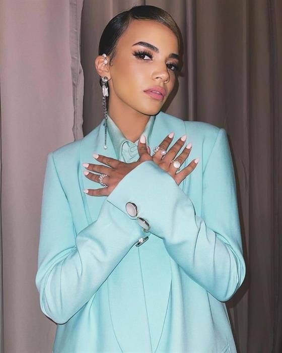 Becky G (sinh năm 1997) là nữ ca sĩ trẻ nổi tiếng với những bản hit sôi động như Shower, Dollar hay La Respuesta. Cô nàng nỏng bỏng chọn một thiết kế của nhà mốt CONG TRI trong BST SS/2021