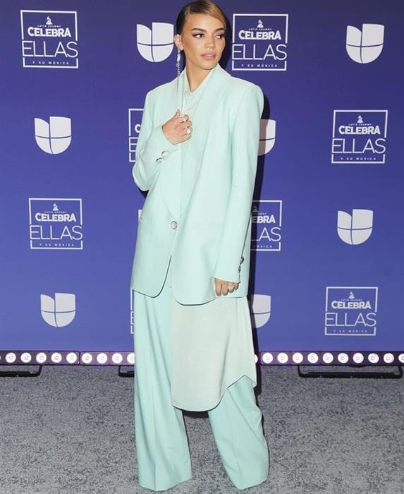 Khác với những nghệ sĩ phía trên, nữ ca sĩ Leslie Grace trong trang phục thương hiệu CONG TRI tại sự kiện “Ellas y Su Música” của Latin Recording Academy lại mang đến vẻ đẹp ngọt ngào, nữ tính. Thay vì hình ảnh quyền lực, mạnh mẽ, mẫu thiết kế màu xanh ngọc của CONG TRI đã giúp Leslie Grace phô diễn vẻ duyên dáng, ngọt ngào của một quý cô đương đại. Mẫu suit với phần tà bất đối xứng giúp tạo điểm nhấn khiến bộ trang phục trở nên thú vị hơn trong mắt giới mộ điệu.