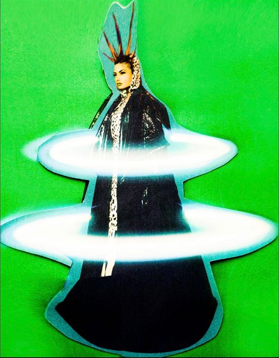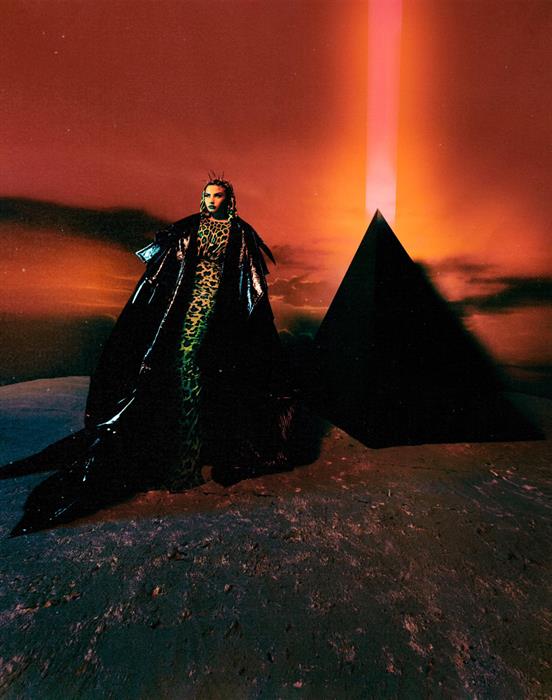 Không hẹn mà gặp, Demi Lovato cũng chọn chiếc áo choàng oversized trong BST Xuân Hè của nhà thiết kế Công Trí. Xuất hiện trong bộ ảnh của tạp chí Paper, nàng công chúa Disney gây ấn tượng mạnh với thần thái khác lạ, tựa như nhân vật bước ra từ bộ phim điện ảnh. Kiểu tóc vuốt keo nhọn cùng mẫu đầm da báo, khoác ngoài chiếc áo khoác đen ngoại cỡ tạo cho Demi Lovato một hình ảnh đầy uy lực nhưng cũng phảng phất nét siêu thực.