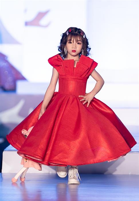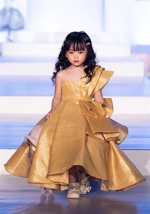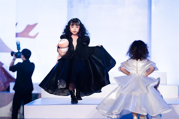 Bên cạnh những mẫu nhí quen thuộc từng xuất hiện trên nhiều sân khấu còn có nhiều gương mặt mới tiềm năng của làng thời trang trẻ em. Đặc biệt, màn trình diễn của dàn mẫu nhí nhỏ tuổi nhất để lại nhiều dấu ấn trong lòng công chúng yêu thời trang tham dự buổi lễ.