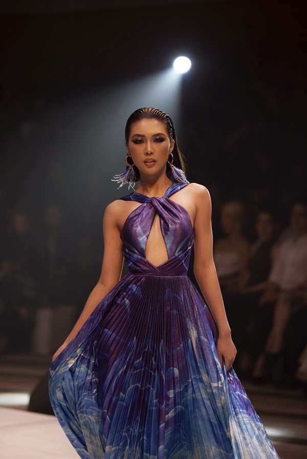 Đáng chú ý, cô là cái tên duy nhất trong dàn mẫu tham gia trình diễn xuất thân từ một cuộc thi hoa hậu. Người đẹp nhận được tràng vỗ tay khen ngợi từ phía khán giả bởi sự xuất hiện ấn tượng trên sàn diễn. Sau đó, cô tiếp tục ghi điểm bởi những bước catwalk tự tin cùng thần thái quyến rũ, đúng với yêu cầu nhà thiết kế đặt ra.
