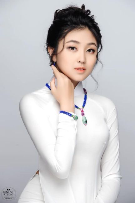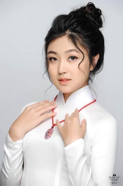 Tintuc - Trong bộ áo dài trắng của NTK Việt Hùng, tân Đại sứ áo dài Việt Nam 2019 bảng Thiếu niên- Thiếu nhi mùa đầu tiên Vũ Trần Bảo Nguyên- Nữ sinh 13 tuổi đến từ trường THCS Lê Qúy Đôn- Quận 3- TP.Hồ Chí Minh khoe vẻ đẹp mỏng manh như sương mai thật hồn nhiên, trong trẻo.
