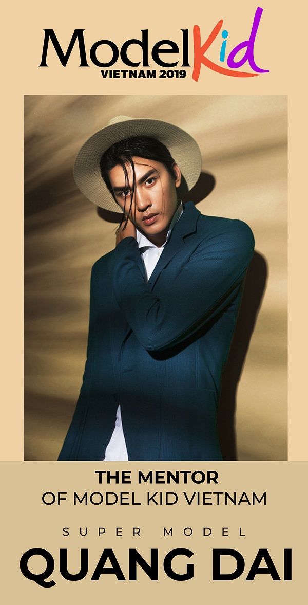 Mentor thứ 3 của Model Kid Vietnam 2019 là Quang Đại – Top 7 VNTM 2013. Chạm ngõ lần đầu với nghề người mẫu qua cuộc thi VNTM, Quang Đại nhanh chóng hình thành niềm đam mê và định hướng theo con đường người mẫu chuyên nghiệp những năm sau đó. Sở hữu vẻ ngoài điển trai, chiều cao lý tưởng 1m88, chàng người mẫu này hiện đang là một trong những cái tên sáng giá trên sàn catwalk. Không chỉ được ngưỡng mộ bởi vẻ ngoài bảnh bao, Quang Đại còn gây ấn tượng với việc từng đỗ vào 2 trường đại học, đó là Đại học Luật TP. HCM và Đại học Nông Lâm. Lựa chọn Đại học Luật và theo học lớp chất lượng cao khóa 35, tốt nghiệp với tấm bằng loại khá chuyên ngành luật thương mại quốc tế, thành thạo 2 ngôn ngữ tiếng Anh và Tây Ban Nha, thật sự là một trong những thành tích đáng nể của Quang Đại. Hiện tại, ngoài sự nghiệp người mẫu, Quang Đại còn trở thành một travel blogger và là một hot-face trên các trang mạng xã hội, thu hút hàng trăm nghìn lượt theo dõi. Anh từng được vinh danh ở hạng mục Người có tầm ảnh hưởng nhất trên mạng xã hội trong khuôn khổ giải thưởng Elle Vietnam 2018.