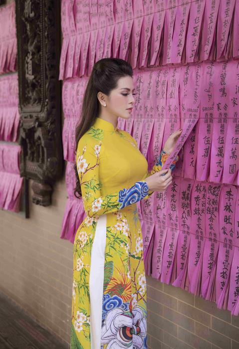 Những mẫu áo dài mang màu sắc rực rỡ, tươi mới đã làm tôn lên được đường nét cơ thể quyến rũ cùng vẻ đẹp ngọt ngào, đằm thắm của nàng Á hậu “ăn đứt” hàng loạt mỹ nhân Việt. Cô chia sẻ cũng như bao người phụ nữ, rất yêu và tự hào về tà áo dài Việt Nam. “Mỗi khi có dịp, tôi đều muốn mặc áo dài để thấy mình nữ tính, thùy mị và đúng chất con gái nhất. Điểm nhấn những chiếc áo dài trong bộ sưu tập này sẽ tạo nên hình ảnh sang trọng nhưng nhẹ nhàng và mềm mại, phù hợp với nhiều phong cách, tính cách”.