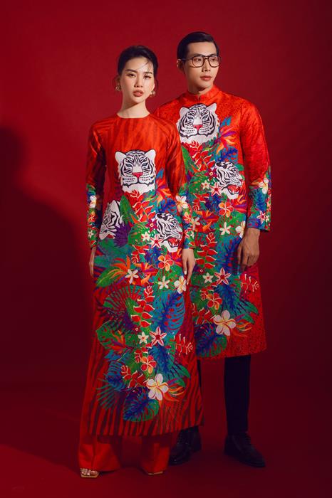 Hình tượng chú Hổ được NTK biến hóa thành nhiều họa tiết khác nhau, vừa dũng mãnh, quyền lực, nhưng cũng vừa rực rỡ, thời trang. Các kiểu dáng áo dài truyền thống được NTK chỉnh sửa cho phù hợp với kỹ thuật cắt may hiện đại, mang lại sự thoải mái cho người mặc.